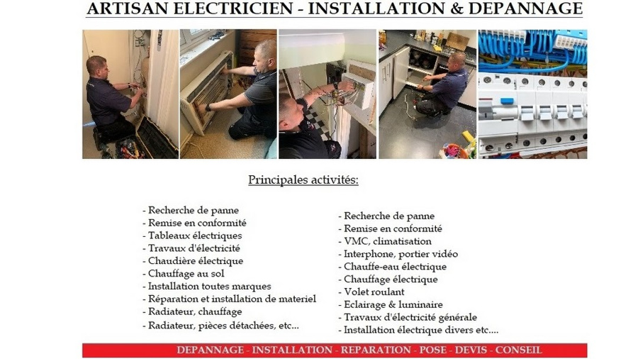 - Installation d'équipements électriques (disjoncteurs, radiateurs électriques, etc.)